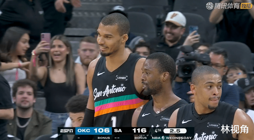 福克斯上篮得手,帮助马刺稳住局势。布莱恩特连续命中两记三分,文班三分也中,马刺突然下起一波三分雨,瞬间将分差扩大。