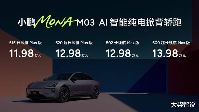 这次加推的 4 款新版型分别是小鹏 MONA M03 502 长续航 Max、600 超长续航 Max,以及 515 长续航 Plus、620 超长续航 Plus,官方指导价在 11.98—13.98 万元这个区间。而且现在下单还有超多福利,即日起至 2025 年 6 月 30 日(含)前,只要支付 5000 元定金,就能免费获得价值 4000 元的 PSS 高级定制 18 扬声器音响,还有 20000 商城积分,可以用来兑换充电、保养或者商城精品,另外天幕遮阳帘、簇绒脚垫、随车 U 盘这些也全都送!除了这些,还有置换复购礼、金融礼、无忧用车三重好礼,整车质保 5 年或 12 万公里,三电质保 8 年或 16 万公里,还有免费首保等等,福利多到让人眼花缭乱!更让人惊喜的是,这 4 款新版型上市即交付,发布会现场,小鹏汽车董事长、CEO 何小鹏还亲自为首批车主举办了交车仪式,这速度和仪式感,必须给个赞!