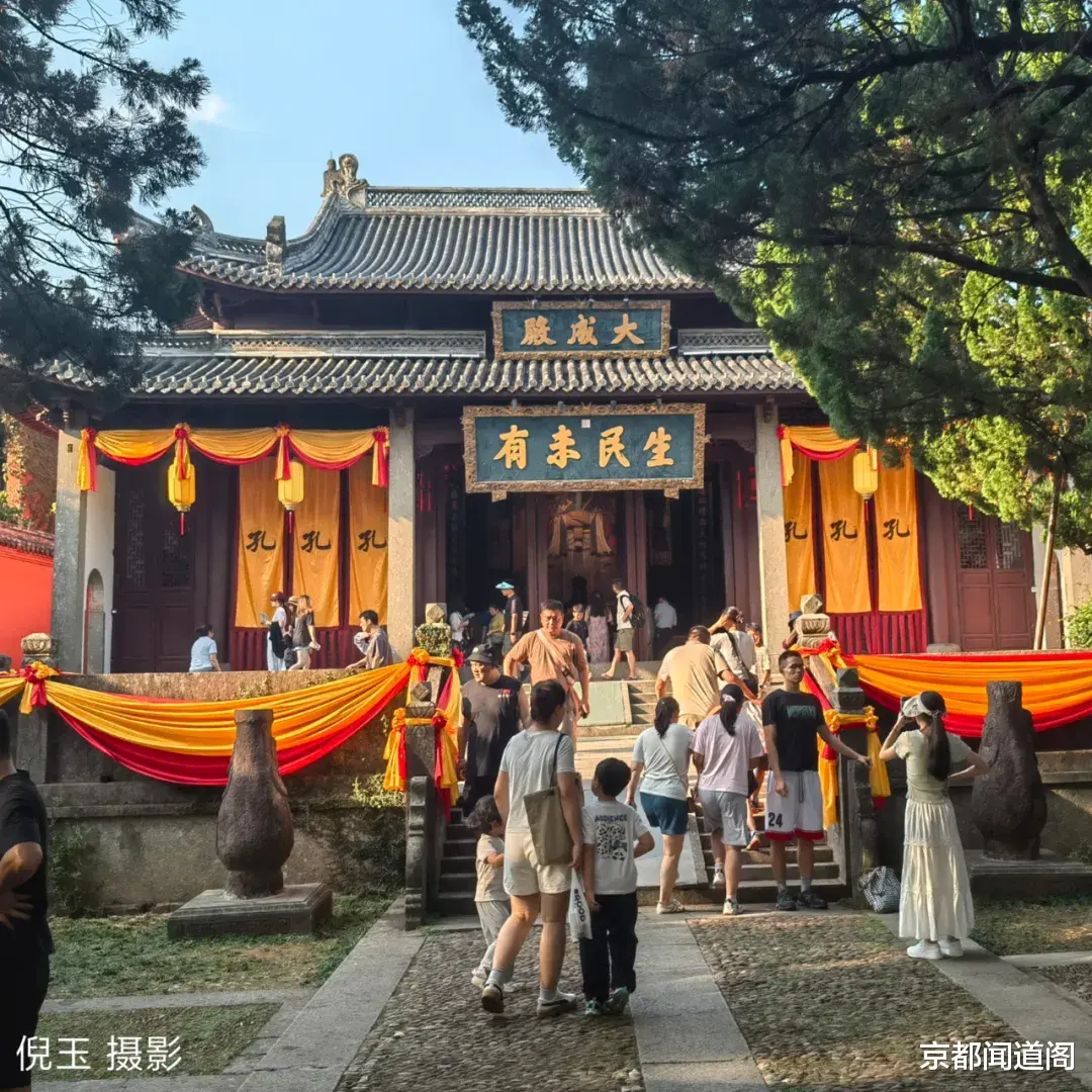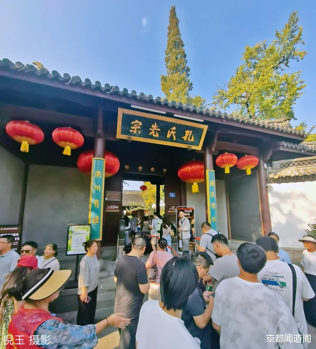 衢州是圣人孔子后裔的世居地和第二故乡,自然而然的成为了儒学文化在江南的传播中心,历史上儒风浩荡、人才辈出,素有“东南阙里、南孔圣地”的美誉,到衢州来旅游孔庙那是必去参观的。衢州孔庙作为全国仅存的两座孔氏家庙之一,虽不及曲阜孔庙的宏伟,却多了一份江南的温婉与静谧。踏入庙门,青石板路被岁月磨得光滑,参天古树枝繁叶茂,阳光透过枝叶洒下斑驳的光影。孔子塑像庄严肃穆,香火袅袅,仿佛能听到千年前的圣贤教诲。庭院中,古琴声偶尔响起,与鸟儿的鸣唱交织,让人不自觉地放慢脚步,静下心来感受儒家文化的深厚底蕴。在这里,每一处殿宇、每一块碑刻,都承载着历史的记忆,诉说着衢州作为“南孔圣地”的传奇。