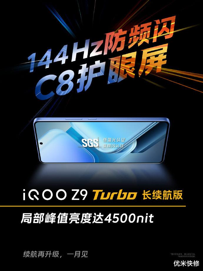 此外,iQOO Z9 Turbo长续航版还配备一块 144Hz 防频闪护眼屏,采用华星 C8 发光材料,官方表示峰值亮度可以达到 4500nit,视觉流畅的同时,还能有护眼的体验。