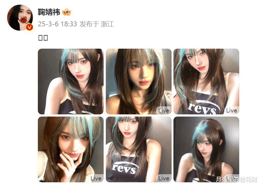 鞠婧祎薄荷绿发色出圈神来了!3月6日,鞠婧祎分享了美照,侧脸、半身、特写等多角度展示发型。哇,是绿色挑染发型,那清新的薄荷绿发丝在阳光下闪耀着独特的光泽,仿佛为她披上了一层仙气。网友直呼: 6宫格,根本看不够啊!