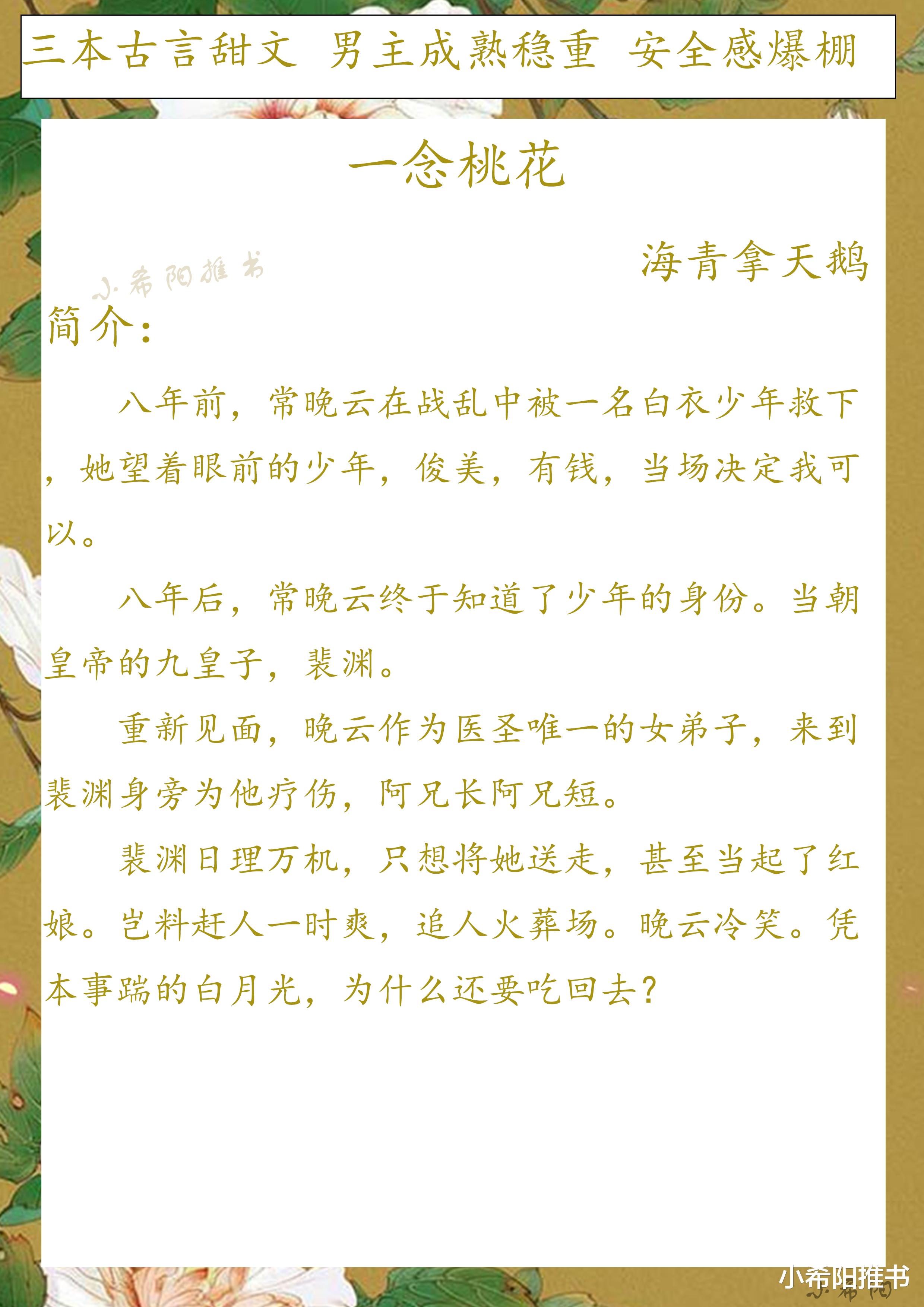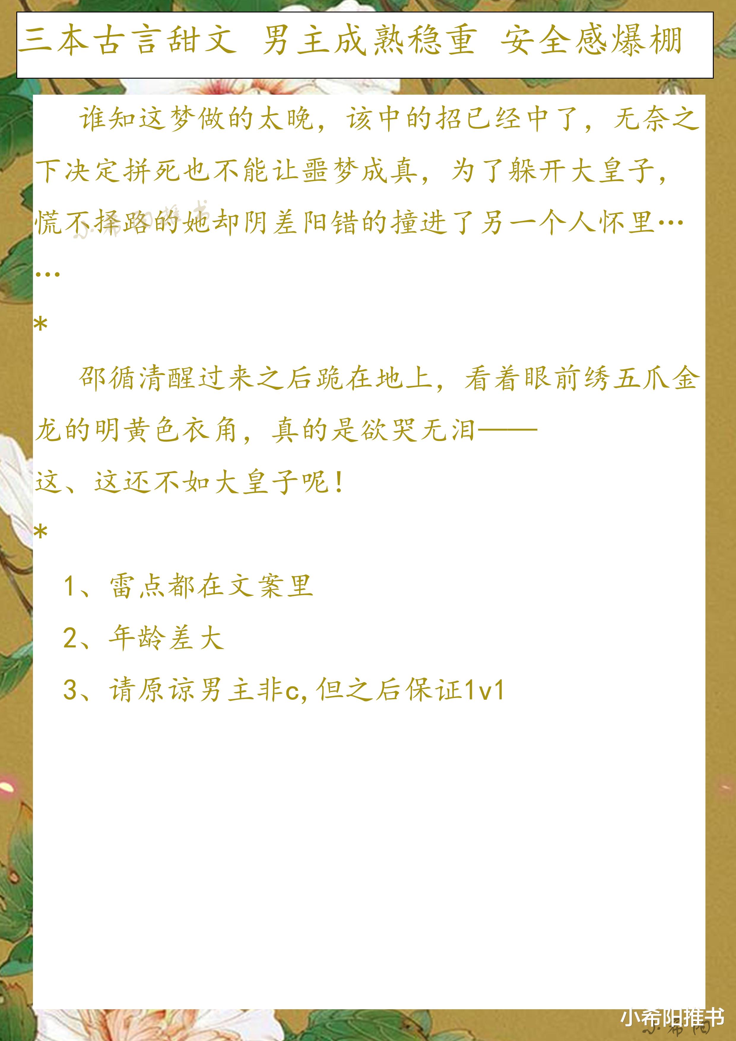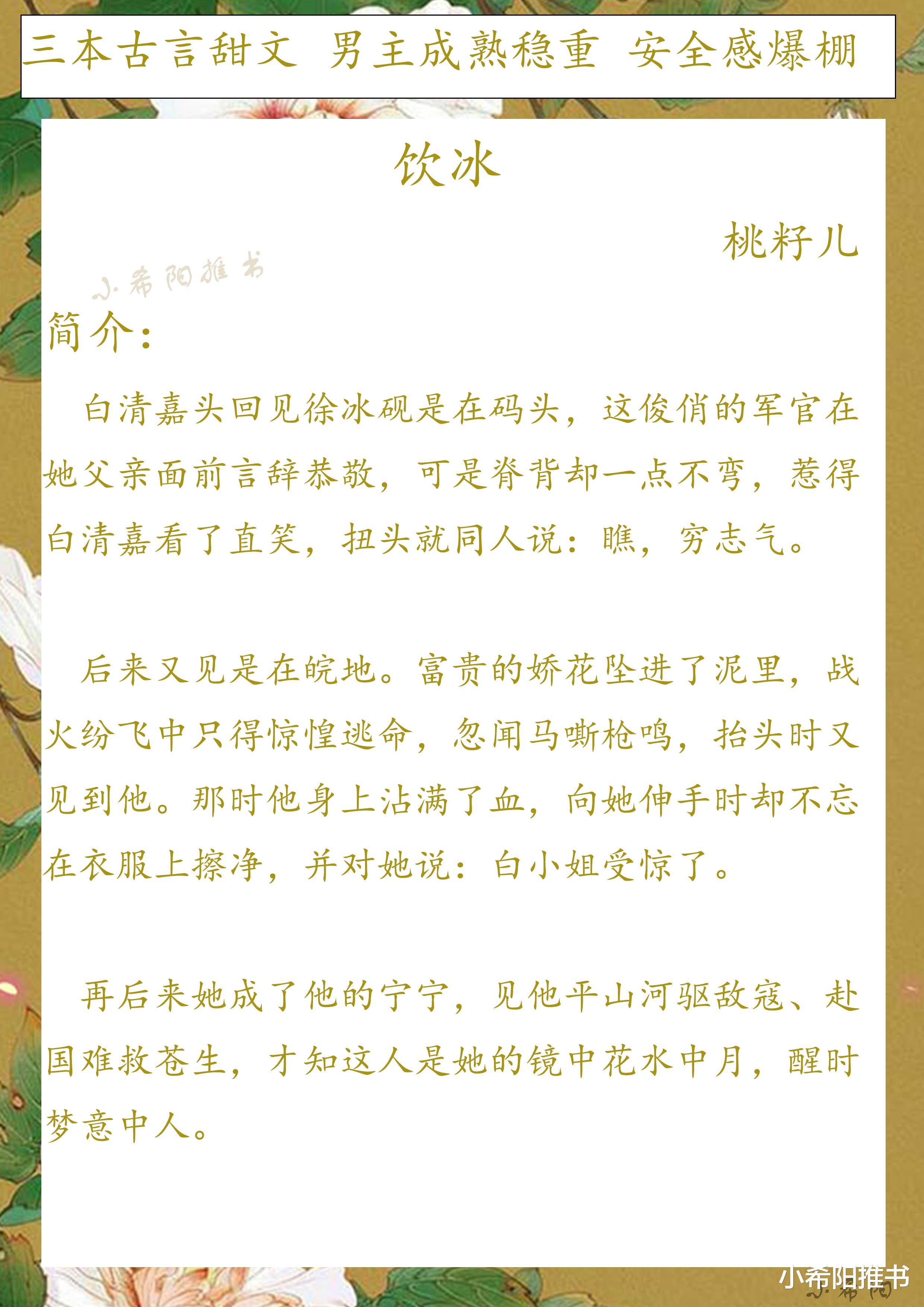 今天推荐三本古言甜文,男主都成熟稳重,安全感爆棚。喜欢的可以追一下呦!
