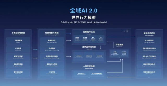 吉利在本届展会上带来了一套名为全域AI 2.0的技术体系,其核心是一个叫WAM的世界行为模型。这名字听起来抽象,实则指向一个非常具体的目标:为整辆车打造一个统一的决策中枢。过去,智能驾驶、座舱交互、底盘控制各自运行在不同的计算单元里,数据不通、逻辑割裂。