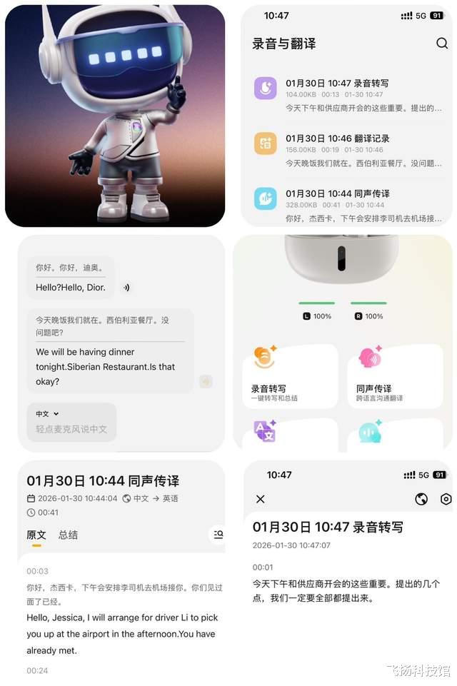 作为核心卖点之一,哈趣Ace1的AI辅助功能简约不花哨,却能精准贴合日常学习、办公的轻需求,为使用体验增色不少。耳机支持中英同声翻译、AI智能对话,搭配录音转写、实时会议纪要等功能。使用时需要摸索一下,开始是有点不知道怎么用,用多才顺手。