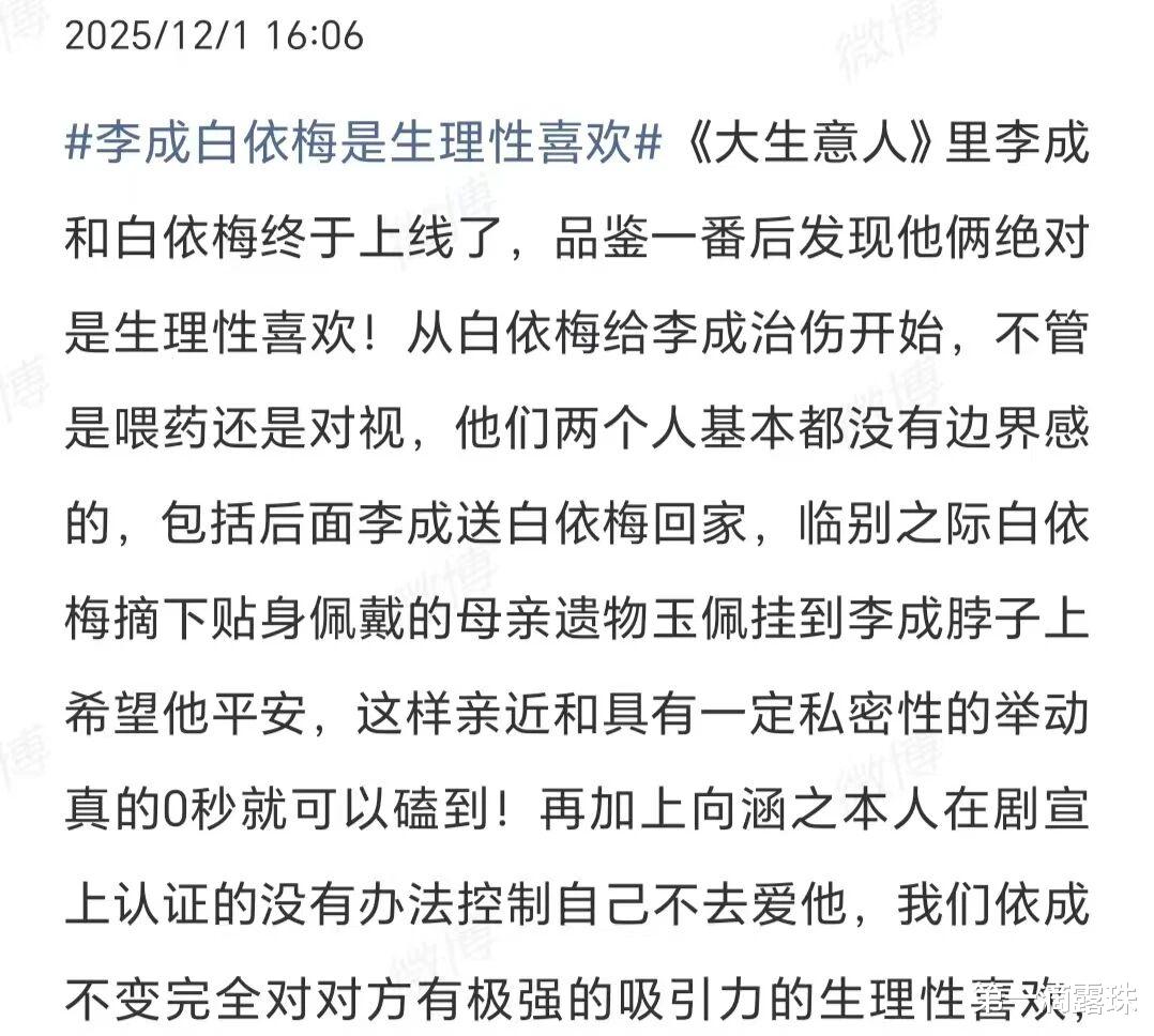 白依梅李成这一对的感情线,始终是《大生意人》的热搜话题之一。白依梅短短几天就移情别恋后,曾经引起观众们的热议和争议。