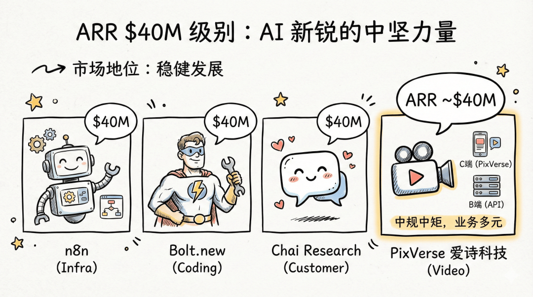 此前,爱诗科技只是市面上数十家视频模型供应者的其中之一,在C端(PixVerse)和B端(API)都有生意,ARR差不多在4000万美金的级别,中规中矩。