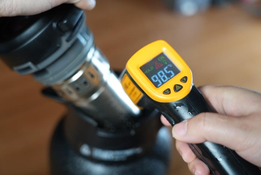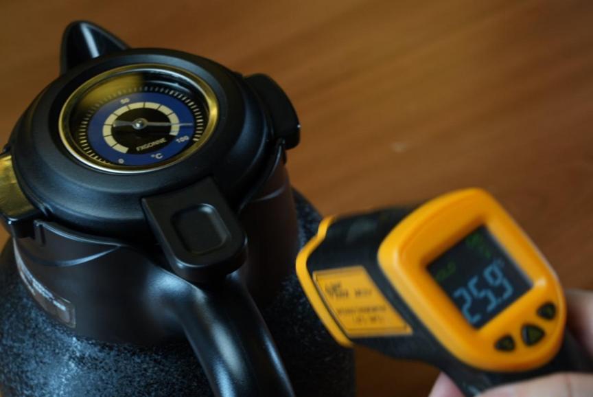 保温壶的核心就是要保温,我也专门测试了一下,注入100℃开水,机械温度计表显96℃左右,较为精准,放置8小时后水温依然能达到75℃,可以看出保温能力相当不错。