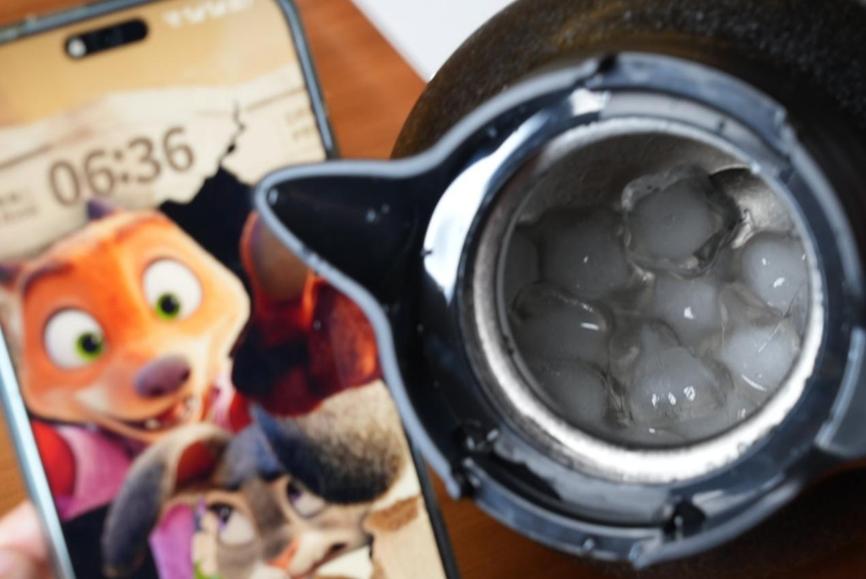 保冷方面,放入冰块8小时后,冰块融化速度很慢,保留量依然很多。