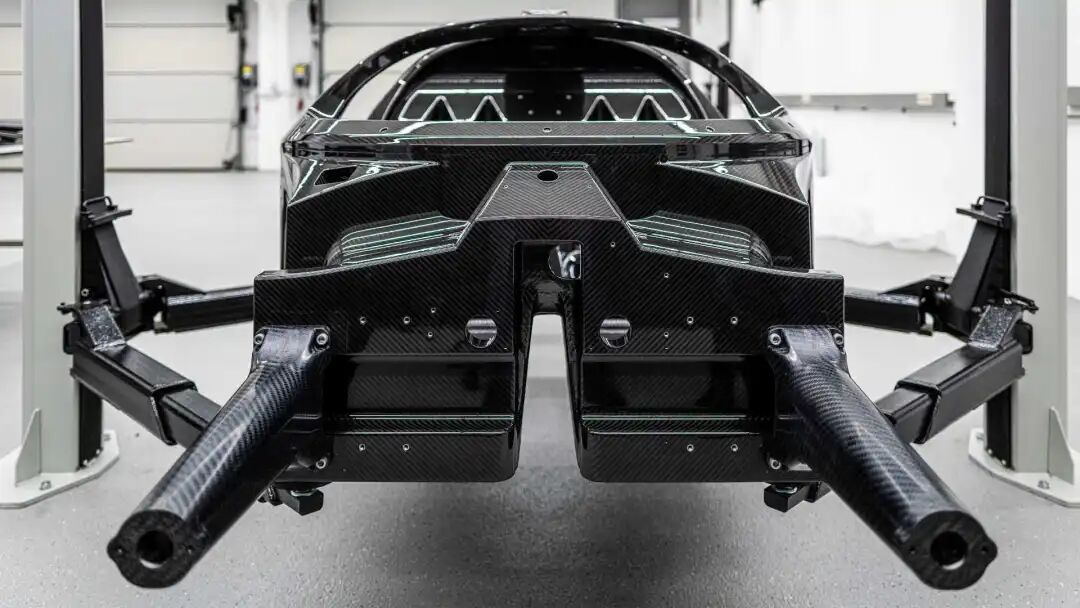 该车采用超轻量化结构,几乎完全由碳纤维和铝材构成,镂空式的内饰暴露出车身结构元素,将简练的、专注于赛车的美学与对极致工程精神的尊重融为一体。
