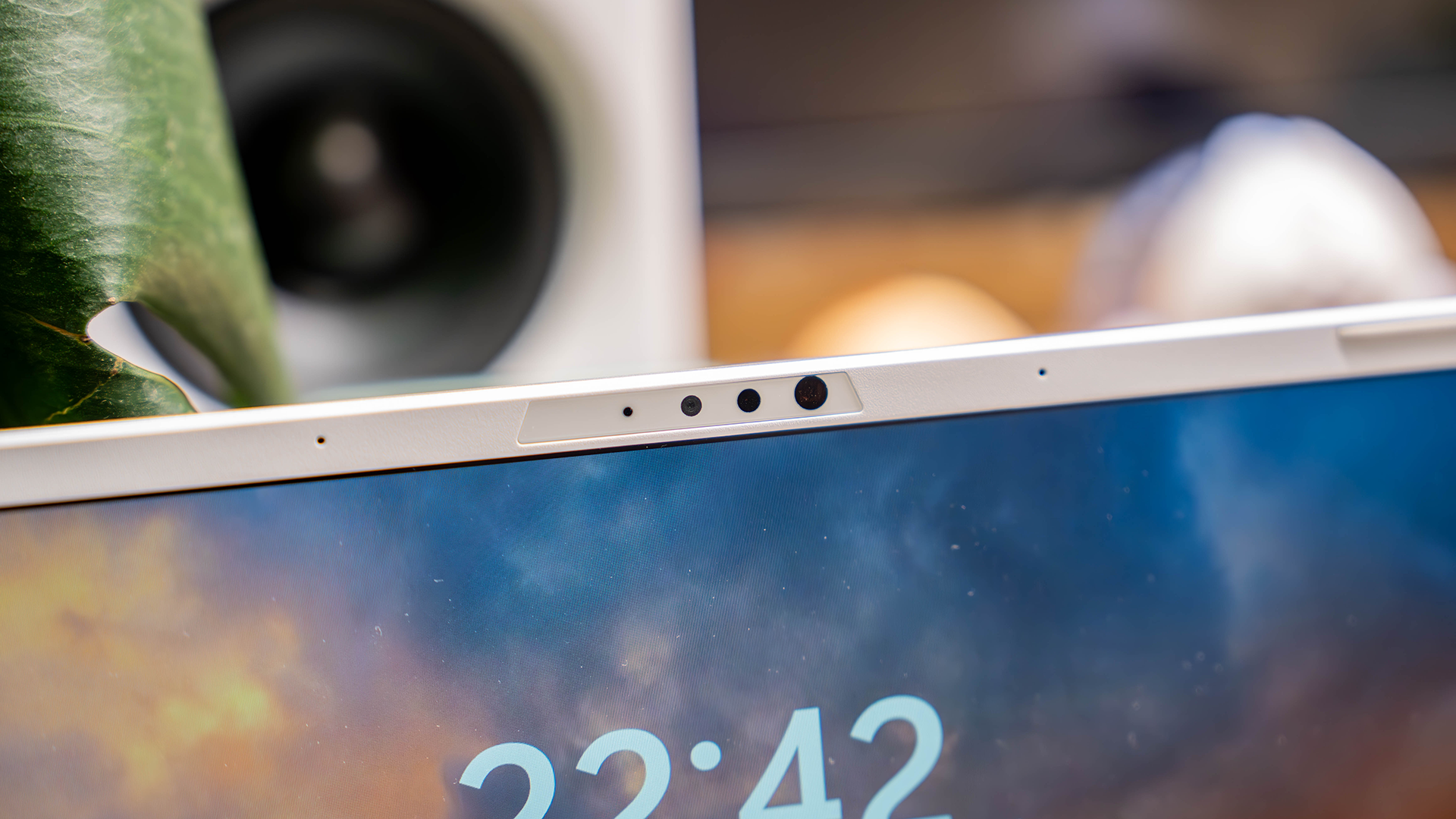 华硕天选Air 2026配备了具备人脸识别功能的IR红外摄像头,支持Windows Hello,开机通过面部识别直接可以进入系统,相当的方便。它摄像头模组的两边,有一对阵列麦克风,完全可以应对视频会议等情况。