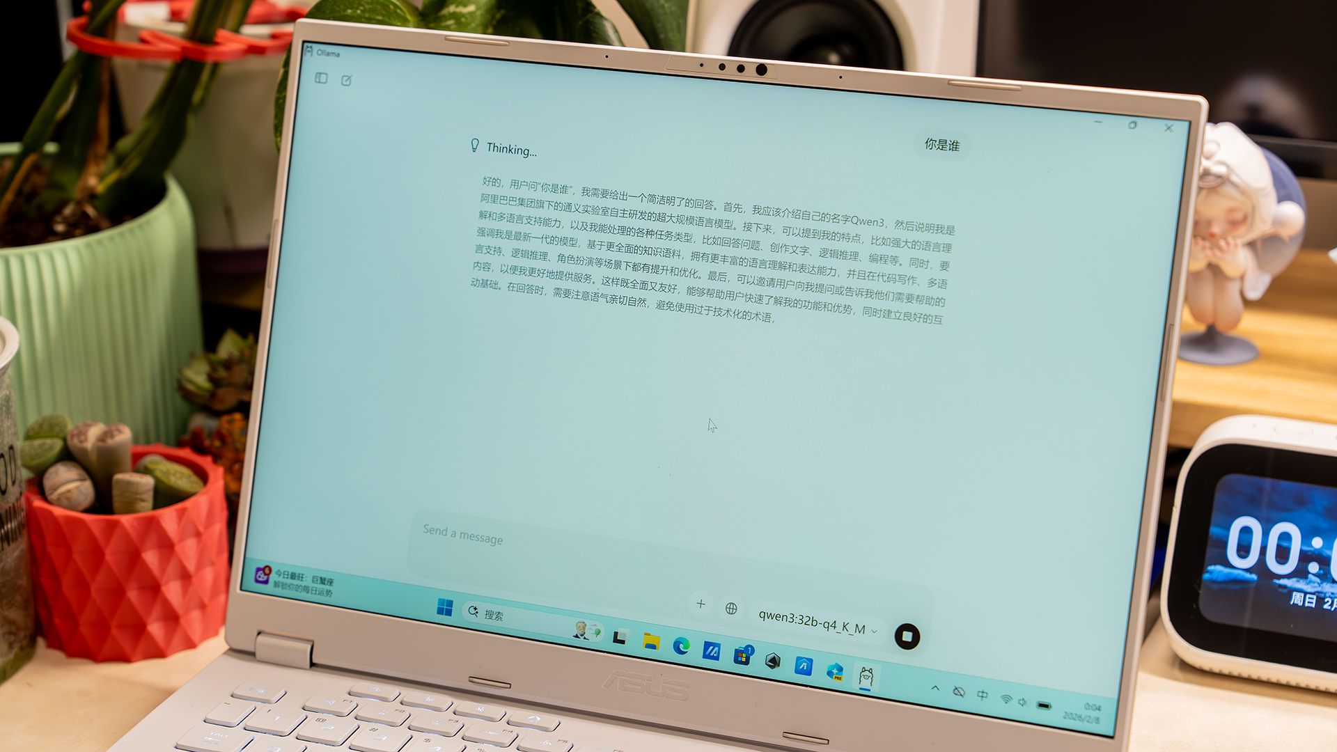 我们也使用它配置了本地运行的千问 32B大模型,从实际的体验上来讲,它的运行相当流畅。我们一问、它一回答,总体使用的感觉与在线大模型极度接近。而本地大模型的好处就是,它不但能够让我们喂资料,培养自己专属特质的AI,更可以全方位保障数据的安全。