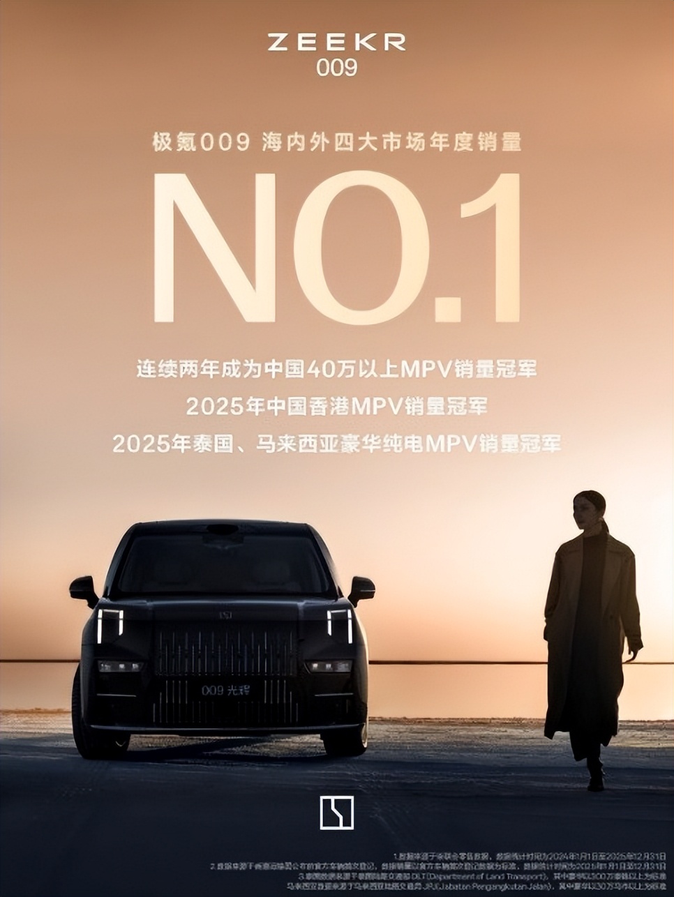 目前,极氪009已经连续两年斩获中国40万以上 MPV销量冠军,2025年同时也超越埃尔法成为中国香港MPV销量冠军、泰国和马来西亚豪华纯电MPV销量冠军,更登顶中汽协纯电动 MPV 保值率 TOP1,用全球口碑与市场成绩,印证当之无愧的豪华MPV王者地位。