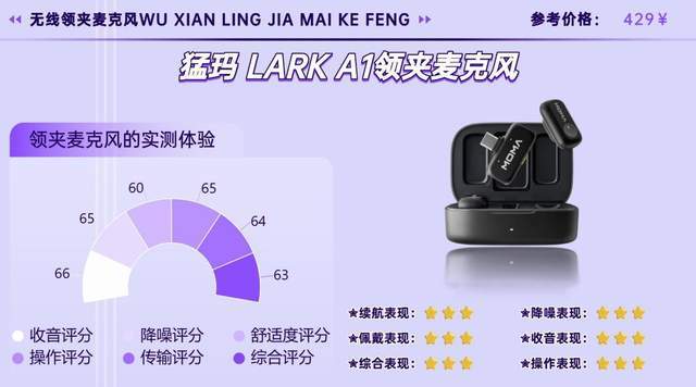 综合性能:360°全指向性收音范围广,支持立体声录音,音质达到入门级优秀水准,人声录制清晰;2.4GHz传输技术稳定,短距离拍摄没有断连或延迟的情况。基础降噪能压制环境杂音,日常常见噪音都能应对,就是复杂环境下收音效果一般,风噪抑制能力不足,得搭配防风配件提升户外表现,底噪声在安静环境下偶尔能察觉。