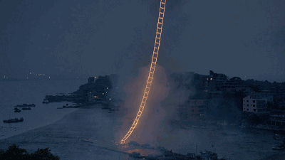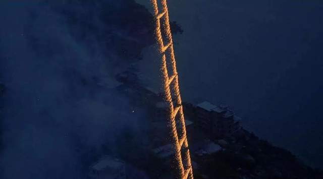 《天梯》的“复魅”,藏在细节里。泉州惠屿岛的渔民,至今相信“海有灵”,每次出海前都会祭拜妈祖;蔡国强没有嘲笑这种“朴素的信仰”,反而将其融入作品——《天梯》燃放的时间选在凌晨,正是渔民出海前的祈福时刻;光带升空时,村民们自发点燃蜡烛,与烟花的光交相辉映。在那一刻,艺术、民俗与自然达成了共鸣,自然的神圣性被进一步强化。