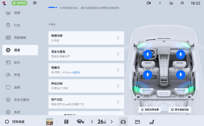语音交互作为座舱最直接的控制方式,其易用性直接影响驾驶中的操作效率与安全性。此次升级推出的超拟人智能体Eva,凭借星睿AI大模型与阶跃星辰“端到端AI语音大模型”的技术支撑,实现了交互体验的跨越式提升。相较于传统语音助手的机械应答,Eva具备更强的类人化表达能力与深度思考属性,不仅可自由切换中英文对话,还能精准识别粤语、四川话等方言,有效避免“指令传达无效”的尴尬。此外,声纹识别功能的加入,能为每位用户建立专属使用档案与情感记忆,让座舱交互更具个性化温度。