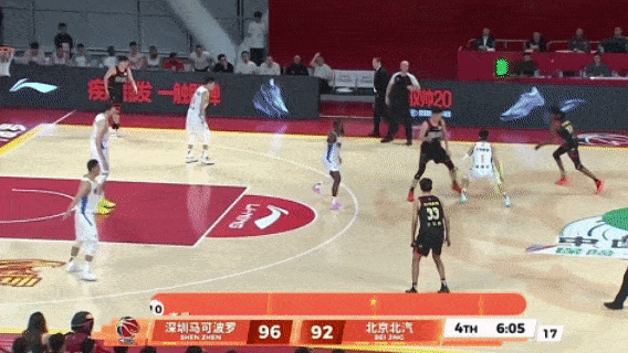 同样的位置,同样的挡拆,但是这一次王浩然选择接球后突击篮下。王浩然步子大,只运一次就三步篮,利用左手上篮终结