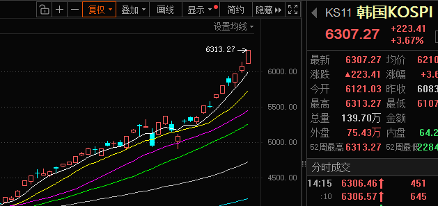 三星电子:涨幅达 69.72%,今天盘中最高涨至 217500 韩元,涨幅逼近 7%,市值接近 9000 亿美元。SK 海力士:涨幅达 66.6%,今天盘中涨幅超 3%,股价最高达 1053500 韩元,这波储存涨价太猛了……