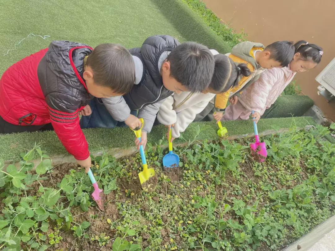 宝贝们在老师的带领下,拿着小铲子努力的为栽种小苗做准备工作——翻土,土壤肥沃树苗才能长高。