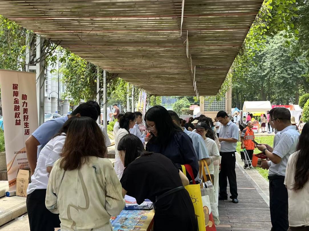 活动现场,银行、证券、保险、基金等金融领域企业紧扣“金融知识普及与风险防范”核心,充分发挥专业优势开展服务。工作人员通过拆解电信诈骗、非法集资典型案例,发放图文并茂的金融知识手册,向商圈职工白领及社区市民通俗讲解投资者权益保护、虚假金融产品辨别、信贷风险规避等实用内容;同时设置互动体验环节,针对居民提出的“如何识别理财陷阱”“个人信息如何安全保护”等问题逐一解答,让大家在轻松交流中掌握金融技能,切实提升金融素养与风险防范意识,现场参与热情持续高涨。