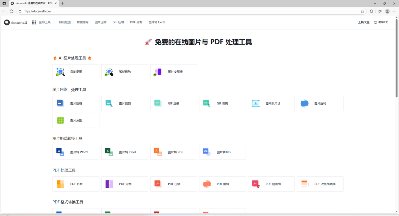 四、docsmall这是一个完全免费的图片和 PDF 在线处理工具。