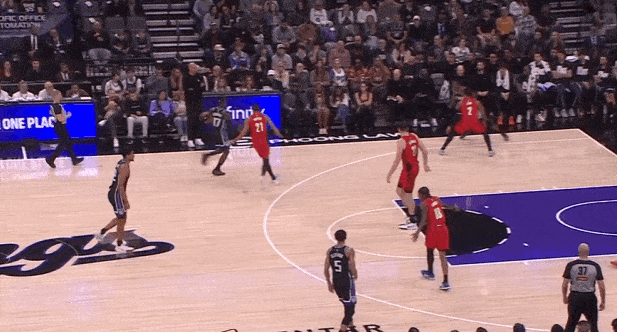 卡德维尔底角接球后,蒙克立即反跑上前衔接手递手配合,发动第二波进攻:借掩护延阻追防的夏普,行进间刺探急停进一步逼退克林根,随即衔接炸球撤步后仰中投。