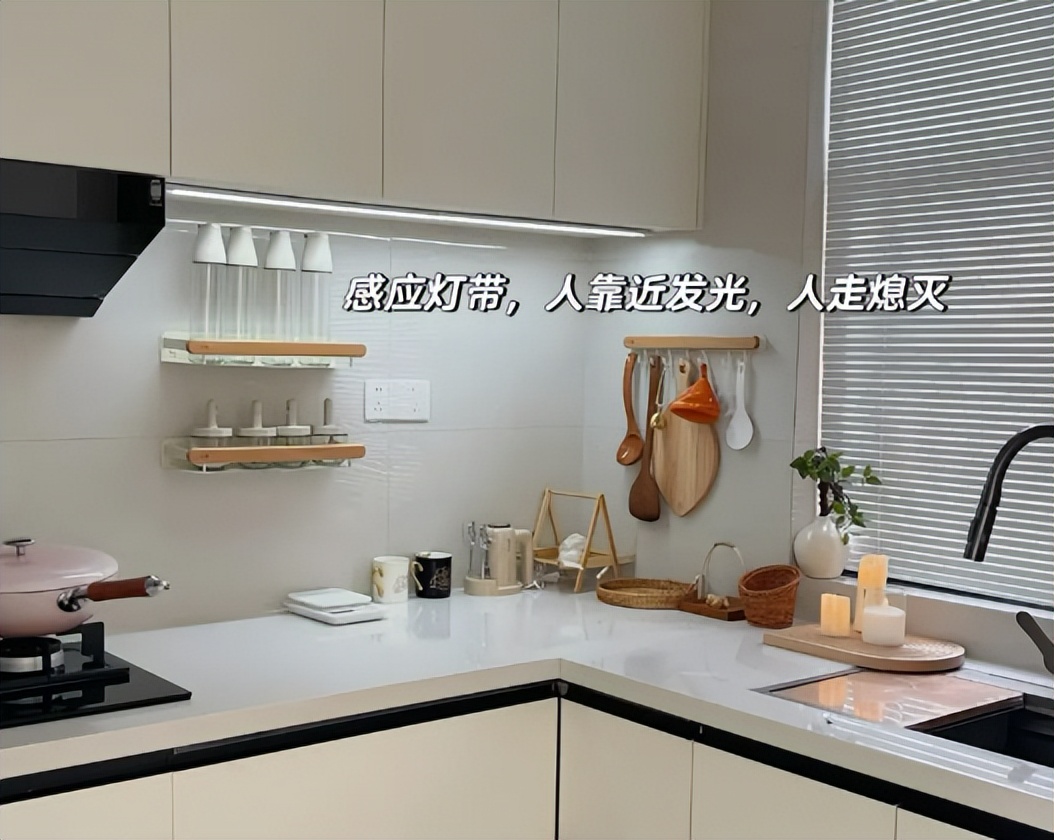 关键做了感应式灯带后,污垢都能看得很清楚,晚上做完饭还能顺手把厨房给清洁干净。