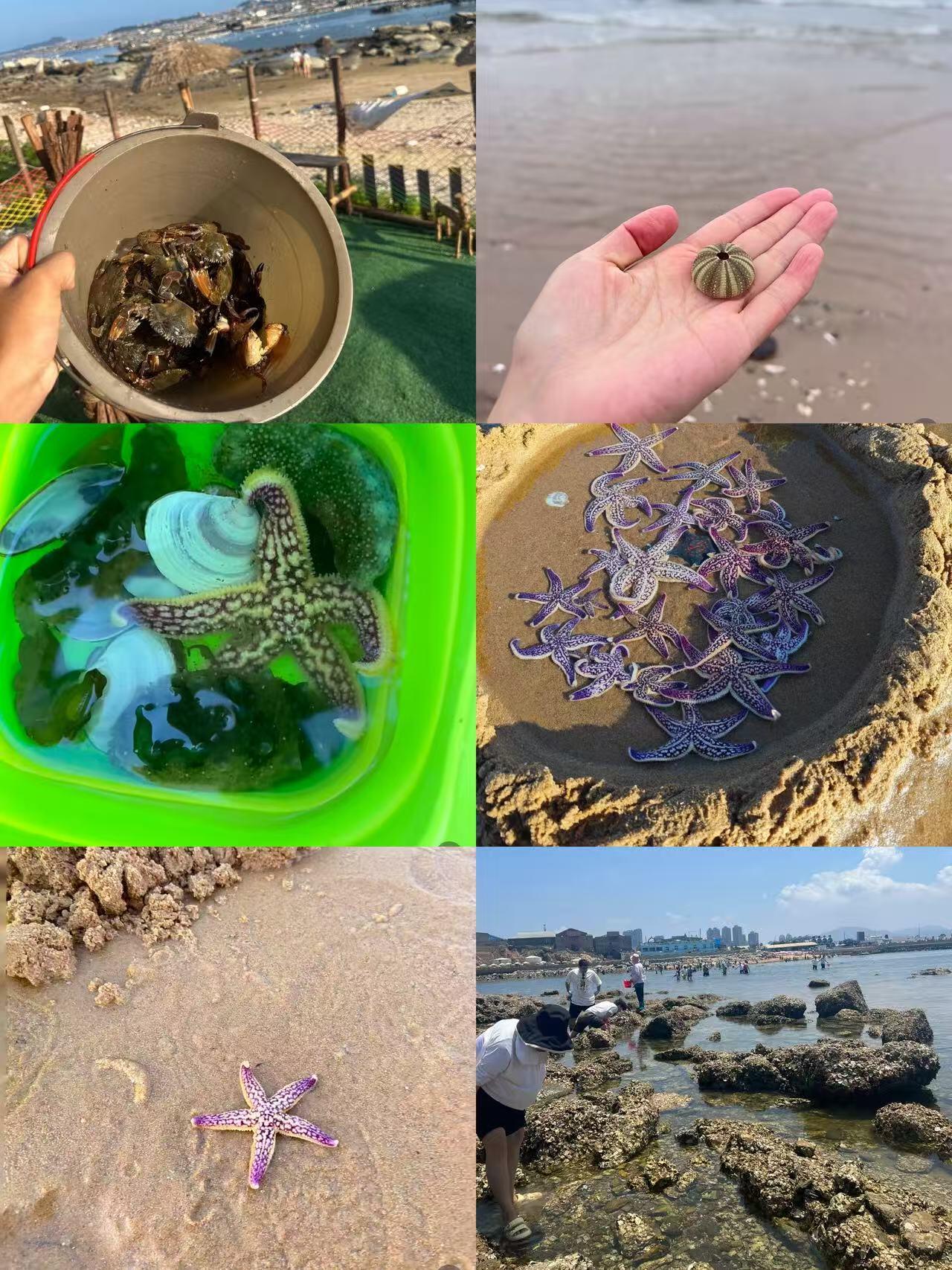 这里的海虹超多!一簇簇粘在礁石上,用小铲子一撬就下来,鲜得很~🦪 。建议自带赶海工具,周围小摊卖的有点贵。感觉位置有点偏,建议自驾过去,打车可以拼车更省钱~