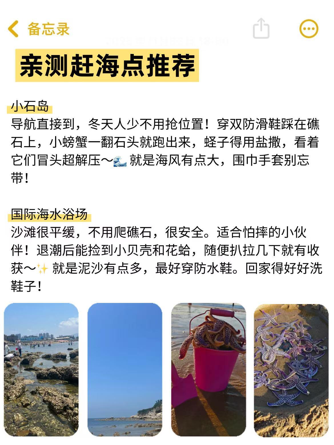 这是我我无意发现的小众赶海点,人少清静!沙滩上几乎没有人。能挖到小海螺和海胆,就是海胆有点小,得耐心找找~🐚 冬天风真的很大,记得穿防风外套,别冻着了