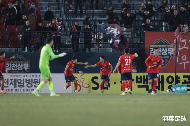 然而,比赛的进程远非比分所呈现的那般平静。金泉尚武早早陷入困境,主力前锋李尚宪因犯规被直接红牌罚下,球队从开场便陷入以少打多的被动局面。下半场,金泉尚武后卫一次禁区内手球送点,光州外援弗里德约松冷静主罚命中,金泉尚武本赛季第一次品尝到落后的滋味。