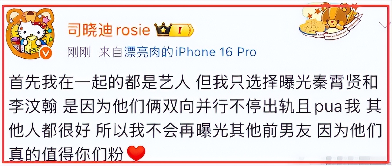 司晓迪还洋洋得意的发文说,【终于在30岁睡遍了内娱的男顶流】。