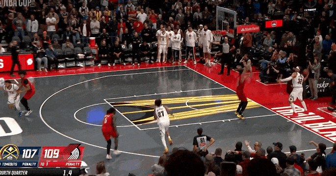今日NBA杯小组赛,开拓者主场109-107战胜掘金。约基奇最后1.4秒接底线球转身抛投出生,可惜颠出篮框错失绝平。