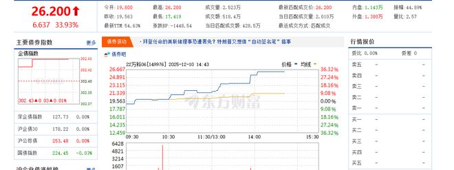 此前市场对万科3600亿元有息负债的担忧,随着债务展期落地和化解路径清晰而显著降温。与此同时,万科境内债持续走强,12月10日“21万科02”涨幅超30%,价格升至24元,市场对其信用修复的预期不断升温。