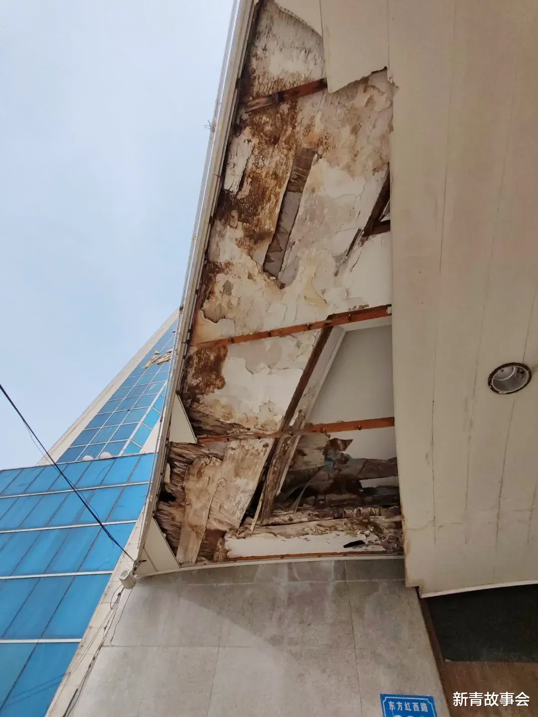 ▼顶板掉了一块,锈蚀斑斑。