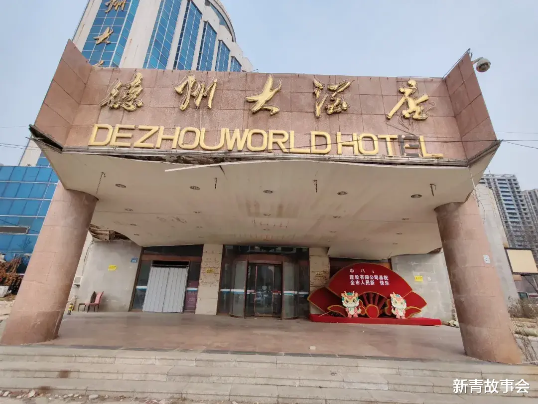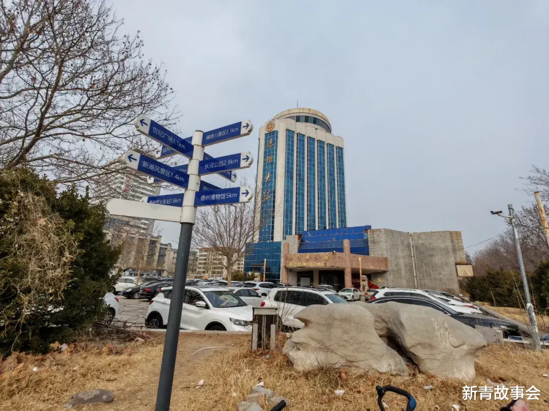 前几天,由北往南骑行在德州中轴线——湖滨大道上,恰巧路过德州大酒店,印象中德州大酒店是从从2014年马年停业的,到2026年马年正好一轮回。大家可能会到中心广场、新湖公园、世纪广场游玩散心,或者到百货大楼购物,都能看到德州大酒店,大酒店的形象深入人心。也有不少市民上下班经常路过这里,但只是匆匆而过,没有时间到里面一探究竟。即使因为停车进入里面,也是一时一站,短暂停留,也没有仔细审视过。当时我就有了一种进去仔细探访一番的欲望,有了这个想法,于是便毫不犹豫的在湖滨大道与东方红路交叉路口西北角,踏过低矮的围墙,一跃而下,踏入曾经是德州最繁华的酒店之一,记得第一次来这里吃饭已经将近30个年头了。印象中客流量非常大,一楼大厅满满当当的,而且还有人在门口排着队。与现在的冷清荒凉、破破烂烂、杂草丛生形成鲜明对比。现如今,每天院子里停的车也是满满当当的,不过不是来吃饭的,绝大多数是到人民医院看病或者是看望病人的。德州大酒店始建于1993年,2014年停业,经营二十余年,那二十年正好是德州黄金发展期,也是商业、餐饮业极度繁荣,无论是商场还是酒店都是人山人海,一片朝气蓬勃的景象。现如今城市面貌发生了翻天覆地的变化,不过貌似没有了以前的那种朝气劲头,不知道大家有没有同感。对于德州大酒店停业,不同人的有不同的看法,不过大家普遍认为这么好的地段,竟然闲置了十二个年头,太让人惋惜了。记得前些年在靠近人民医院一侧还搞了一个烧烤摊,夏天的时候来吃过几次,还是挺不错的,这个摊子也撤了好几年了,现如今基本上变成了德州市人民医院的收费停车场,一个酒店变成停车场,痛心啊。下面我们随着镜头到里面一探究竟。