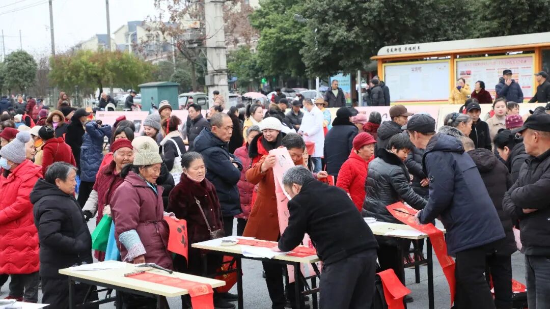 闻讯而来的群众排起长队,大家一边等待,一边品评春联寓意。老人们捧着墨迹未干的春联细细端详,孩童们踮脚围观,眼神里满是好奇与向往。