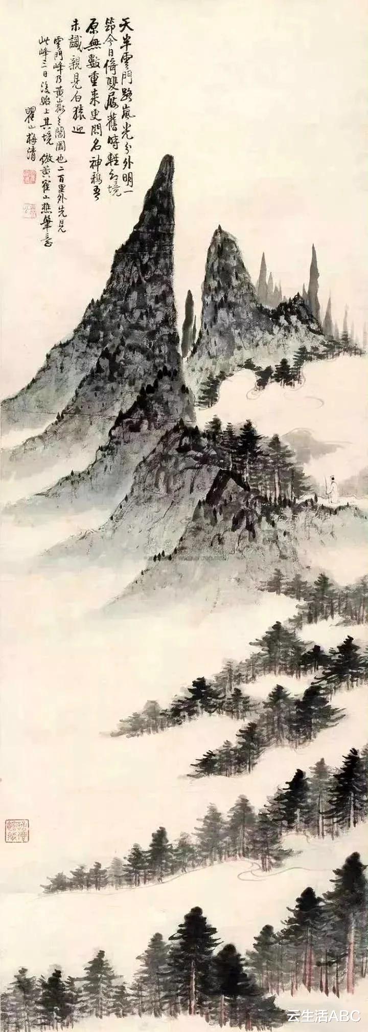 他不仅擅长绘画,还精通书法和诗文,每当他登上黄山,俯瞰云海,他的诗意大发,写下了众多脍炙人口的优美诗篇。