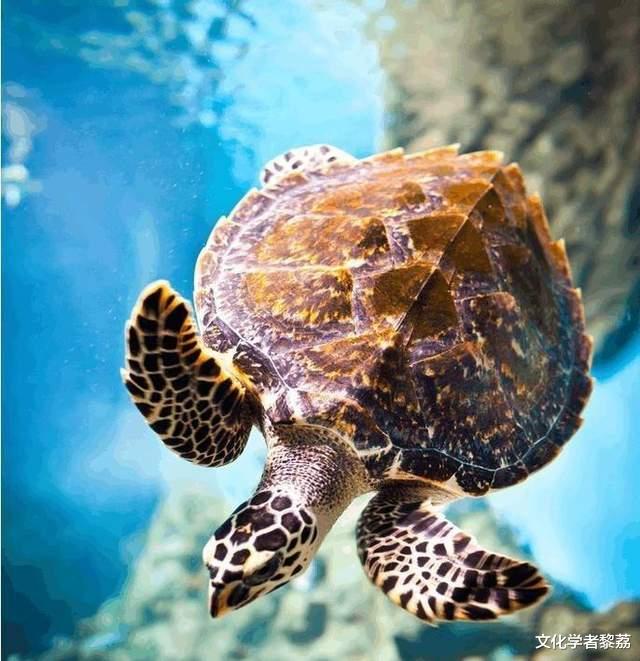 如果我是一只海龟,我会在黎明前醒来。当第一缕阳光穿透海面,在我的背甲上投下斑驳的光影时,我会缓缓睁开那双看过千万次日出的眼睛,慢吞吞地划动前肢,让海水从背甲上滑过去。这具壳跟了我多少年,我已经记不清了——棕褐色的甲壳上,深浅不一的环状斑纹,如岁月的年轮,浅黄小花斑点缀其间,每一片鳞甲的缝隙间都闪烁着微黄的光泽,像是星子遗落海洋的碎片。这具粗糙而温厚的背甲,承载过藤壶的定居、藻类的涂鸦,也承载过幼年时那场惊心动魄的破壳之旅。如果谁曾抚摸过海龟的背甲,他们触摸的是两亿年的孤独进化。