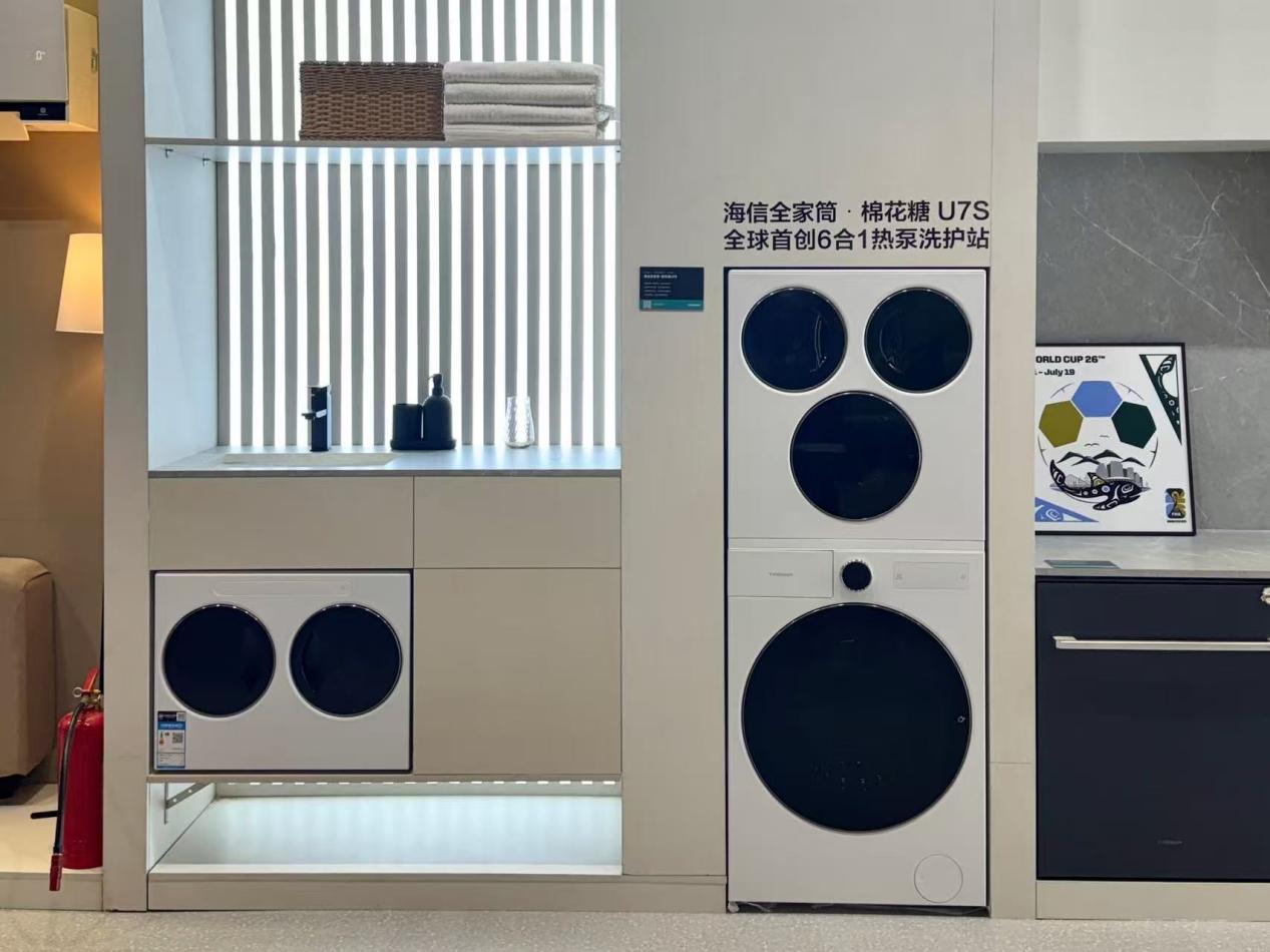 这不是海信第一次在洗衣机领域拿出“不一样”的产品。2017年,海信推出全球首台三筒洗衣机,彼时“分区洗护”还是一个新鲜概念;2025年,海信推出全球首台4合1热泵洗烘一体机,收获超10万家庭用户。而这一次的棉花糖U7S,被官方定义为“全球首创6合1热泵洗护站”。