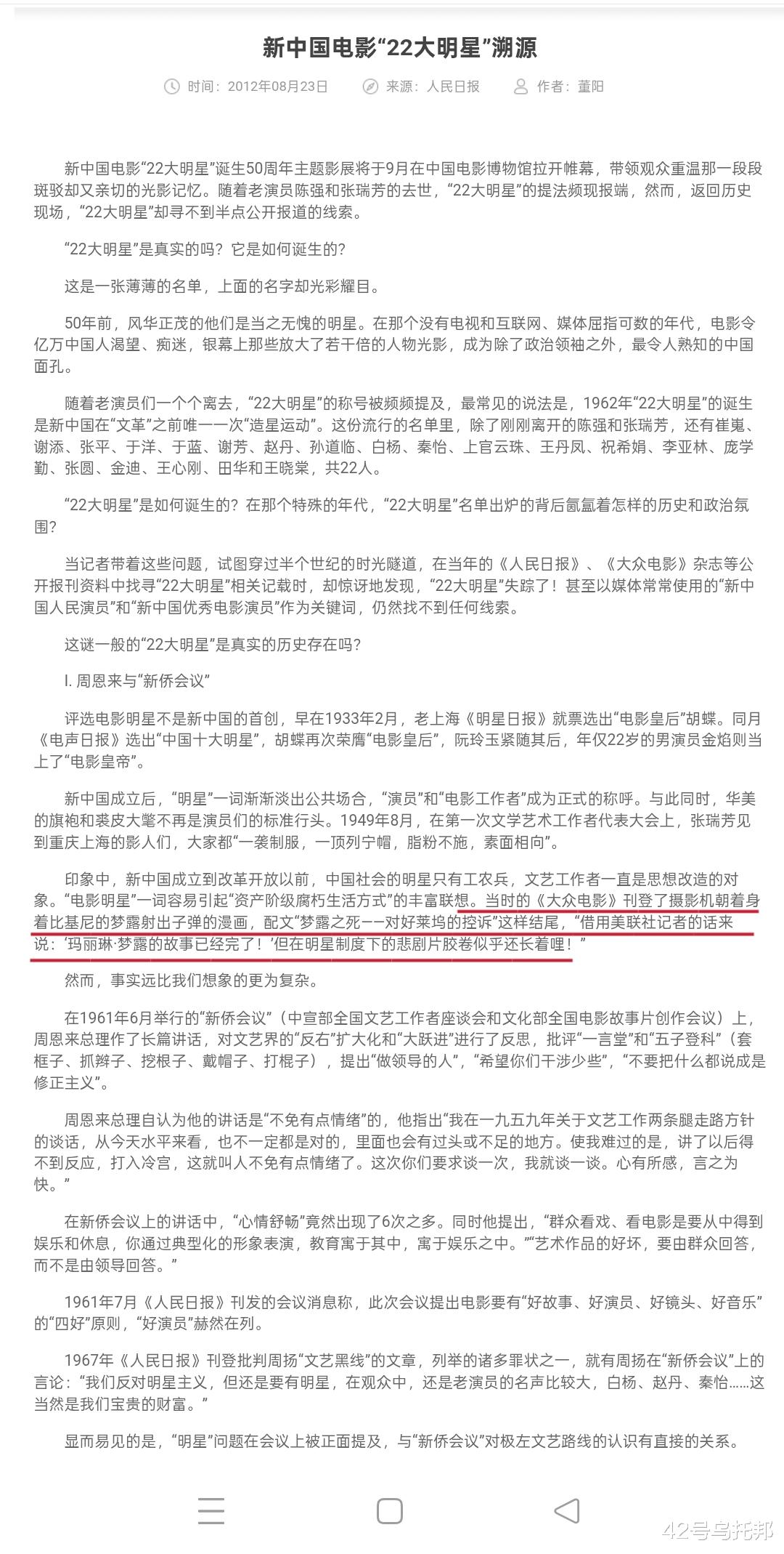 这篇报道也狠狠打脸了那些说梦露五六十年代在中国没有影响力的人——能让《大众电影》这样的国家级官媒专门为她发声,控诉资本主义对她的压榨与吞噬,本身就证明了她在当时中国的巨大影响力与广泛知名度。