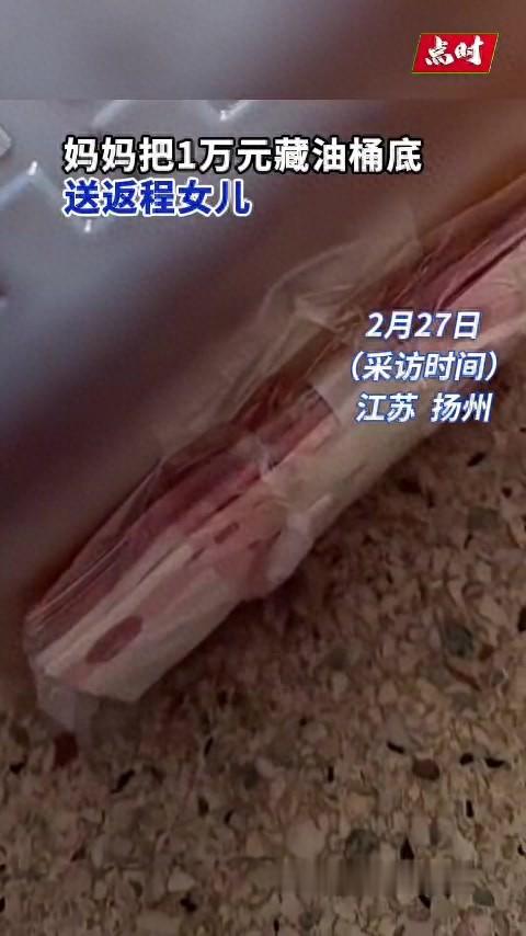 2月27日,朱女士告诉记者,此前妈妈多次想给她红包,都被她婉拒了。妈妈不知从哪里想到这个办法,特意把钱藏在油桶下,还亲自拎上车叮嘱她不要乱动。直到行驶途中油桶晃动不稳,她下车整理行李时才发现这笔钱。朱女士说,妈妈只是普通农村人,一年挣不了多少钱,这份沉甸甸的爱让她无比动容。