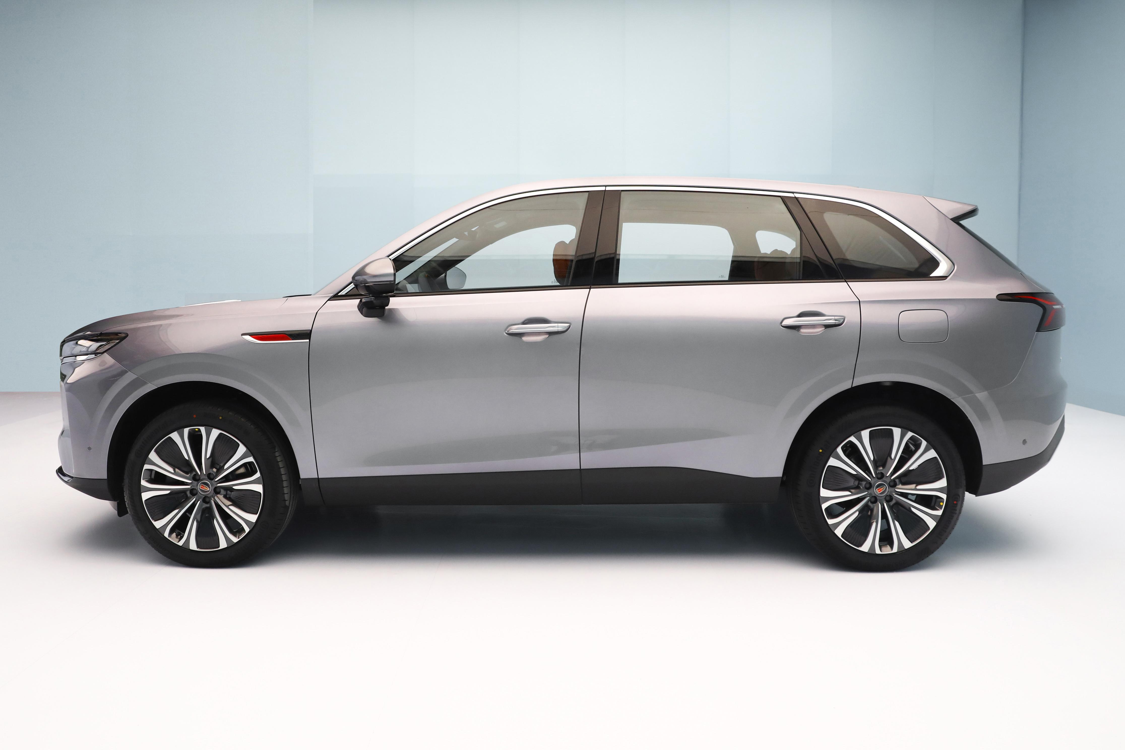 车身侧面线条特别流畅,传统造型车门外拉手没搞成隐藏式的,我觉得这挺好,既实用又可靠。悬浮式风格的外后视镜采用无边框处理,搭配18英寸或20英寸轮辋,整体看着大气舒展。
