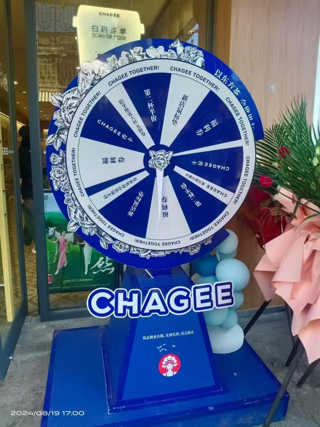 许是感受到了威胁,近期霸王茶姬在多个城市开展线下促销活动:伯牙绝弦9.9元/杯,买两杯转转盘,赢取CHAGEE香卡、第二杯半价、福利券等。