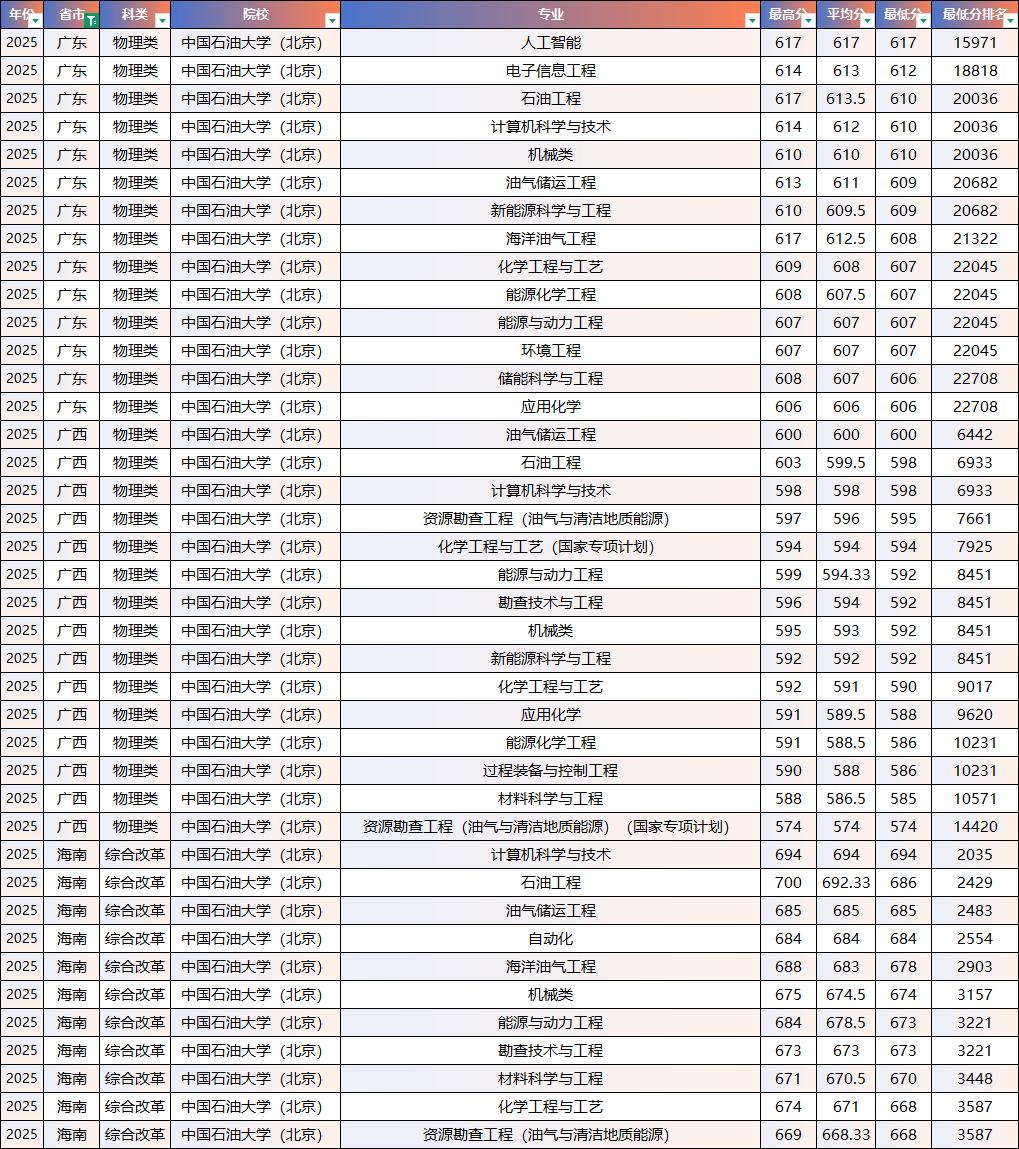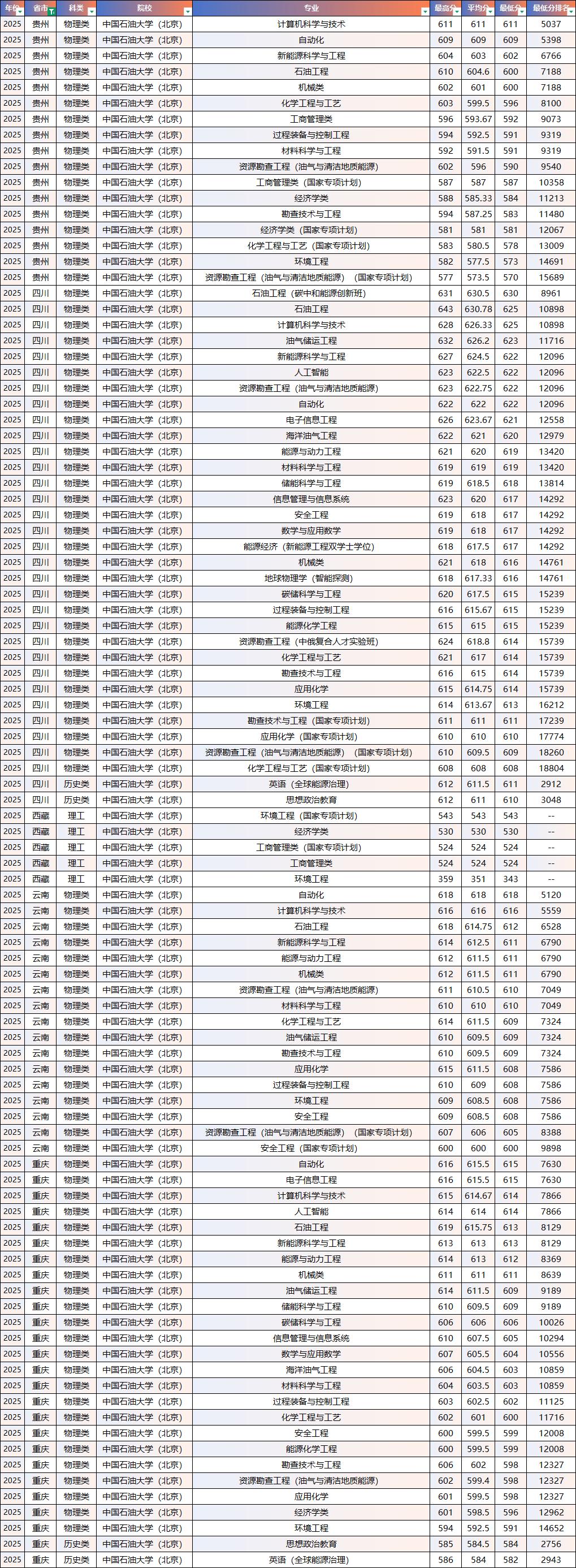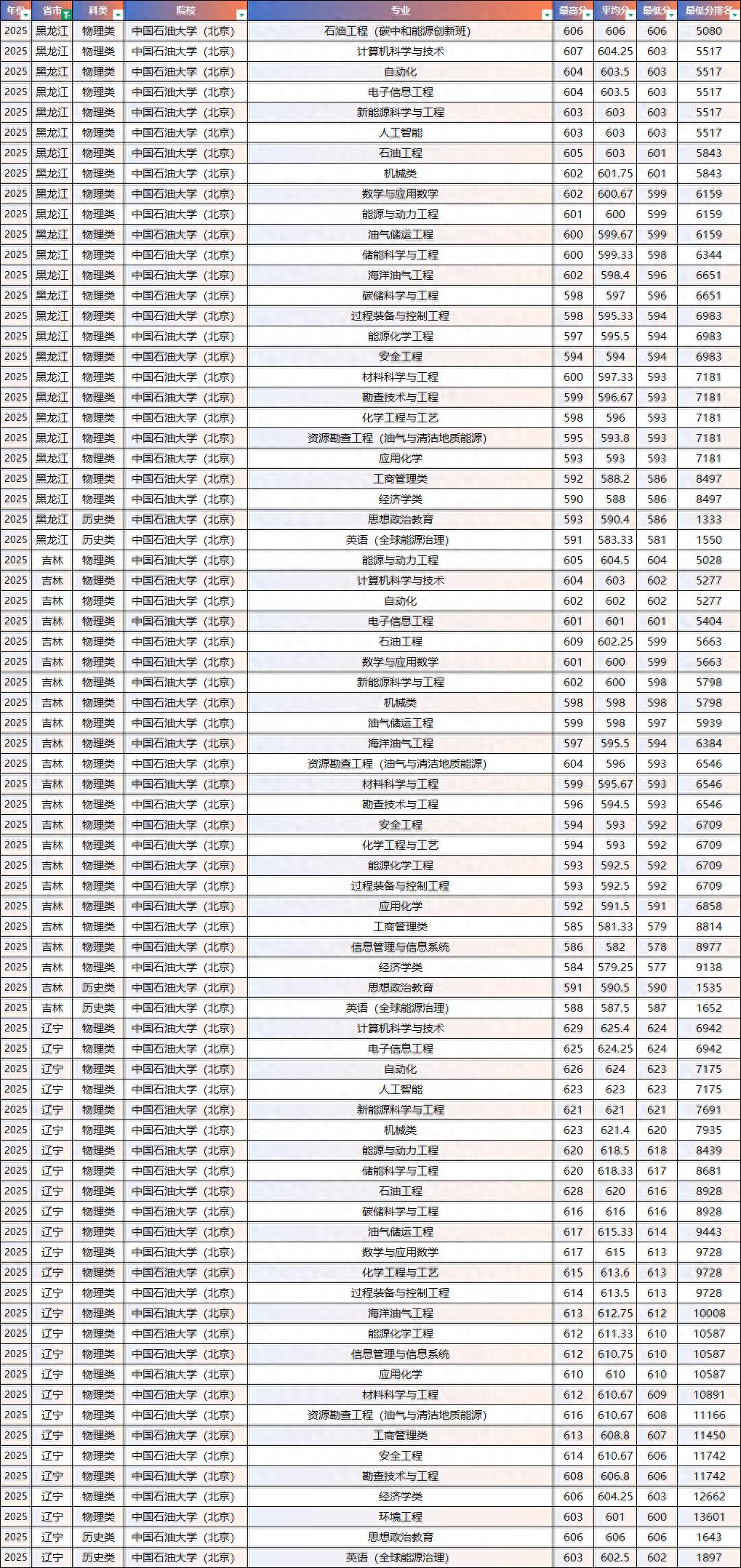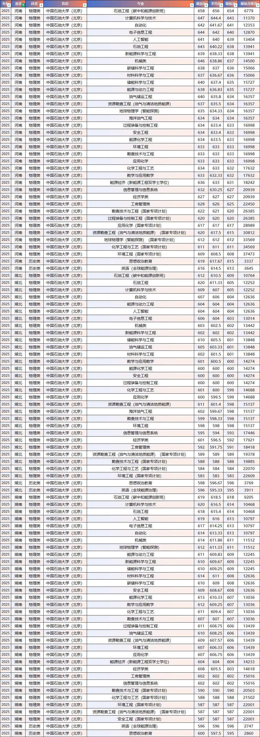 2025年中国石油大学(北京)院校录取分数线数据汇总!择校参考