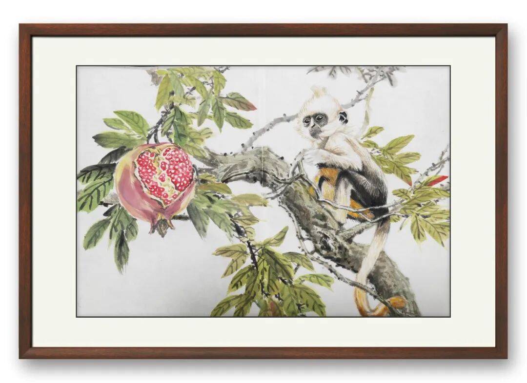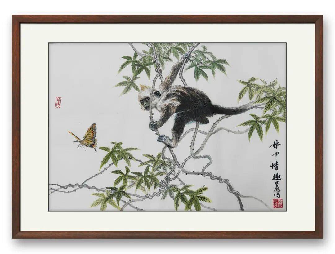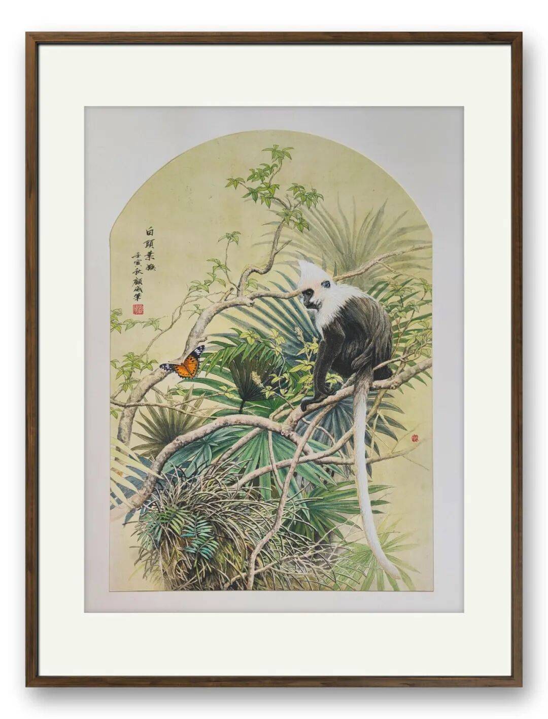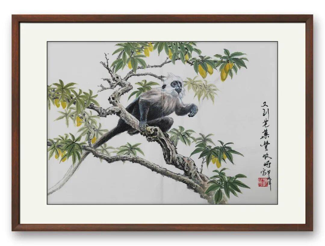 中国画有 “画鬼容易画人难” 之说,就是越熟悉的就越难画。而猴子在走兽一科中,是最难表现的动物之一。与猴有关的成语有尖嘴猴腮、猴年马月、沐猴而冠等,可见猴与人的关系多么密切。历代画猴的名家大师不是很多,因此可供参考学习的资料并不丰富,尤其是关于广西特有的白头叶猴的画作更是少见。不过也正因为如此,留给他创作的空间反而更大,束缚也更小。