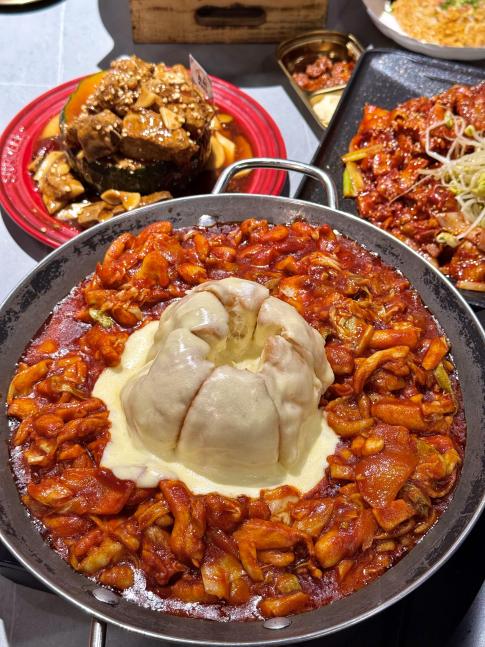 韩系创意料理店,店内环境简约干净,春川熔岩鸡芝士分量足,火鸡面春卷口感丰富,饭团馅料饱满,菜品现炒现做,是年轻人喜欢的韩餐小馆。