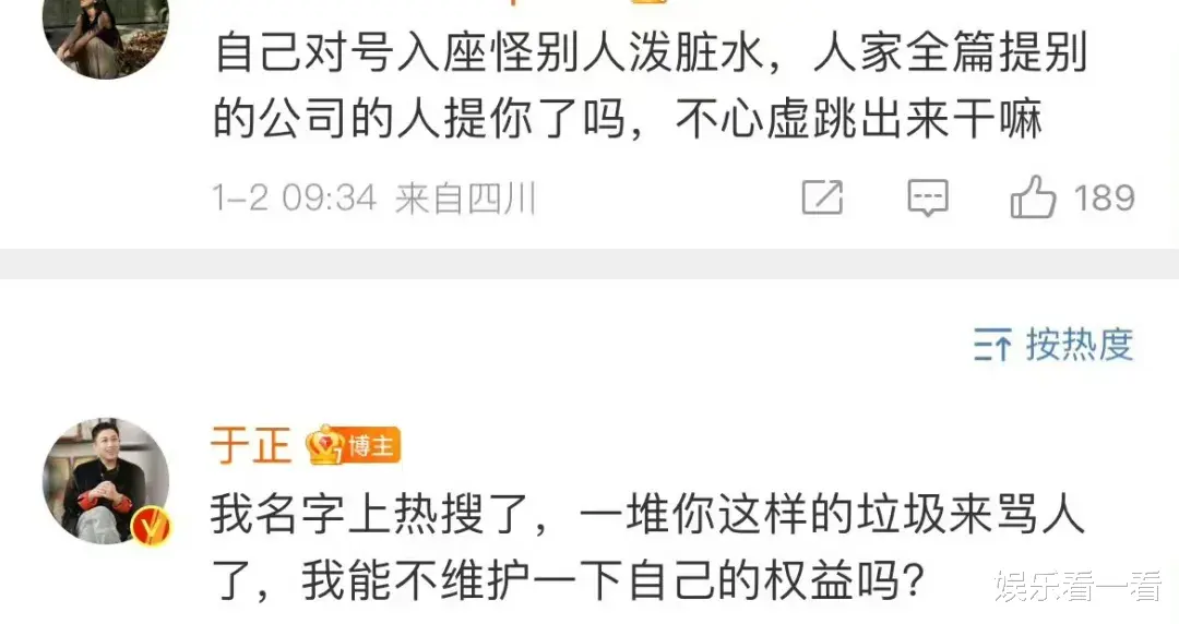 同一天,于正发文回应相关传闻,直接正面喊话硬刚:“赵露思,我怎么着你了?”