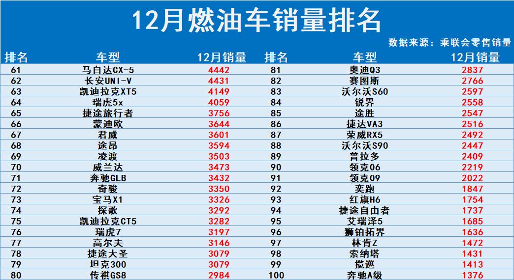 当电动化成为车市讨论的主角时,十二月燃油车的销量榜单提供了一份沉静的回响。从数据来看,这个看似传统的市场并未失序,反而呈现出一种结构性的稳定。轩逸、卡罗拉锐放和朗逸位列前三,月销量均在2.2万辆以上。紧随其后的速腾、帕萨特、凯美瑞和雅阁,构成了中型轿车的坚实阵营,它们满足的是对空间、品牌和行驶质感有进一步要求的消费群体。SUV方面,途观L、本田CR-V和瑞虎8等车型的销量,证明家用多功能车的市场需求依然旺盛。燃油车依然受宠!12月销量完整排名:轩逸速腾破2万,CR-V第12!