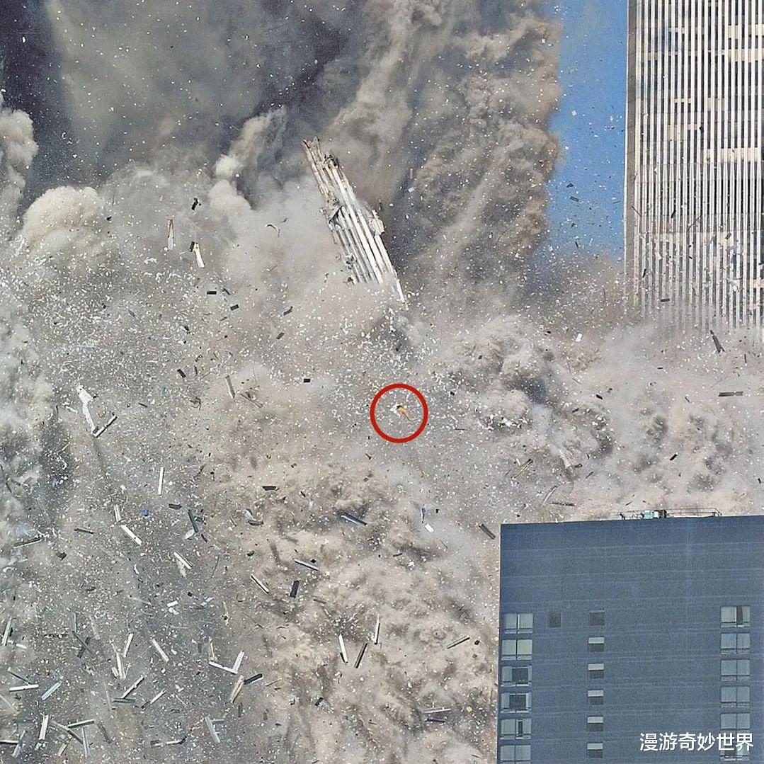 正在倒塌的南塔,画面中间似乎是一个人,而且貌似已经不太完整了…也有很大概率在倒塌前他就已经遇难了…