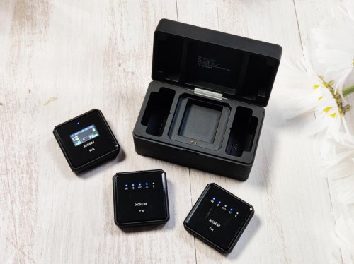 它采用充电盒一体收纳设计,开盖即自动开机,收纳保护与便捷使用兼顾;接收端配备1.1英寸触摸屏幕+波轮操作,可预设不同相机增益参数,支持同步相机开关机,新手也能快速上手。发射器提供磁吸+夹扣双佩戴方式,适配不同衣物场景。