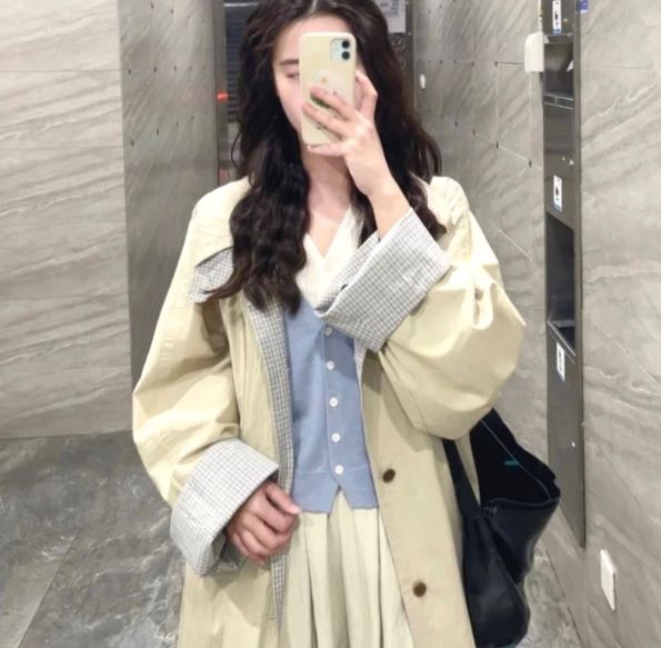 只扣第一颗扣子,几乎算是法式风格的标志性手法。随意地扣上最上方的一两颗扣子,其余部分自然散开,风衣前襟形成优雅的斜线。这种穿法带着一种漫不经心的慵懒,好像只是出门前随手一搭,却暗含着讲究。它尤其适合搭配裙装,走动时,裙摆与风衣下摆若隐若现,层次感十足。